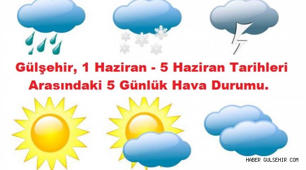 Meteorolojiden son gelen bilgilere göre Gülşehir ilçesinde 1 Haziran - 5 Haziran Tarihlerinde 5 Gün Boyunca Hava durumu şu şekilde olması Bekleniyor. İşte 5 Günlük hava durumu!
