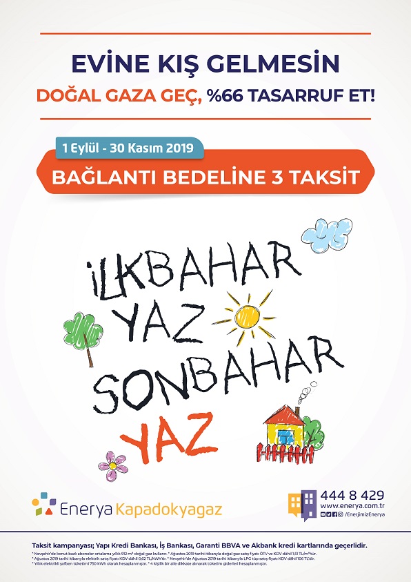 Enerya Gaz bu konuda bağlantı bedeli kampanyası düzenleyerek, bağlantı bedeli yaptırmak isteyen vatandaşlara 3 taksit imkanı sağladı.