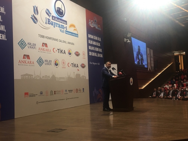 Sempozyumun açılış kısmında konuşmalarını gerçekleştiren Açıkgöz, “Hacı Bektaş-i Veli’nin şehri Nevşehir’imizden, Hacı Bayram-ı Veli’nin şehri Ankara’mıza selamlar, saygılar getirdik. Anadolu’nun manevi mimarları sevgi, tevazu, hoşgörü ile bu vatanın toprağını yoğurmuşlardır. Ülkesine, milletine faydalı nesiller yetiştirmek için manevi değerlerimizi, tarihi şahsiyetleri, özellikle Hacı Bayram Veli’yi tanıtmamız, anlatmamız gerekiyor. Hacı Bayram-ı Veli, gönüllerimiz için manevi ve süresiz okul mahiyetindedir. Ülkesinin bekası için, ezan-ı Muhammedî’ye için şehadete yürüyen kahramanlarımızı da minnet ve hayır dua ile yâd ediyoruz. Milletimizin manevi değerlerine saygısızlık yapanları, dil uzatanları milletimiz gayet iyi görüyor. Hak ettikleri tepkiyi de milletimizin sinesinde görüyorlar. Bu yıl dördüncüsünü düzenlediğimiz sempozyuma katılan, emek veren ve değer katan herkese özellikle de Kalem Vakfı Mütevelli Heyeti Başkanı Musa Şahin’e teşekkür ediyorum.” dedi.