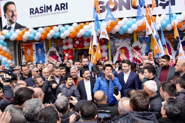 Türk Halk Müziği’nin ünlü isimlerinden Kürşat, AK Parti Nevşehir Belediye Başkan adayı Rasim Arı'nın altıncı seçim bürosu açılışına katıldı.