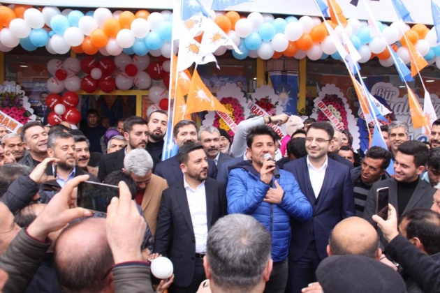 Seçim bürosu açılışında, yapılan konuşmaların ardından ''Seni Başkan Yapacağız'' parçası çalındı. Partililer de alkışlarla parçaya eşlik etti.
