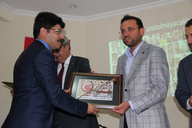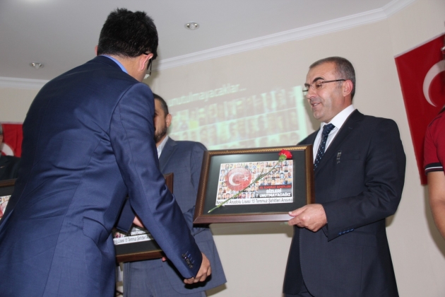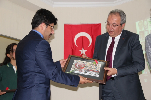 15 Temmuz ‘da hainlerin başarılı olmaları halinde şu anda burada kendilerinin de olamayacağını dile getirerek şöyle devam etti : “ Eğer o ihanet şebekesinin hainleri başarılı olmuş olsalardı,bizler olmayacaktık, milletvekillerimiz,müdürlerimiz olmayacaktı. Siz sevgili gençler sizin geleceğiniz ellerinizden alındığı gibi vatanınız da olmayacaktı. Doğu ve Güneydoğu Anadolu’da PKK, PYD,DAEŞ gibi terör örgütleri kol gezecekti. Vatan toprakları aynı Kurtuluş Savaşı’nda olduğu gibi pay edilecekti.Ama o hainler tek bir şeyi unutuyorlardı,Asil Milletimizin vatan sevgisini. Yüreklerindeki imandan aldıkları güçle,ellerinde silah dahi olmaksızın bugüne kadar dünya tarihinde olmayan bir büyük demokrasi zaferine imza attılar. Elbette o günlerde gerek Silahlı Kuvvetlerimiz içerisinde ve emniyetimizin içerisindeki yüreği vatan sevgisi ile çarpan kahraman Mehmetçiklerimiz ve polis kardeşlerimizde bu zaferde vazgeçilmez bir güç oluşturmuştu. Günümüz iletişim çağı sevgili gençler. Araştırın , inceleyin,Kendinizi ne kadar iyi anlatabilirseniz o denli medenisinizdir. Son günlerde 15 Temmuz ve 16 Temmuz’daki hava harekatına katılan hainlerin seslerini öyle sanıyorum TV lerde izlemişinizdir. Ne diyor hain ‘Ellerinize sağlık.’ Düşünün bir kez bu halkın parası ile satın alınan savaş malzemelerini yine bu milletin yok edilmesi için kullanıyor ve bir de ellerinize sağlık diyebiliyor.Bunları bu millet kıyamete kadar unutmayacaktır. Sizlerde sakın bunları unutmayın.Bunlara karşı daime uyanık olun,zaten uyanık olmamız Allah’ın emri.”dedi.