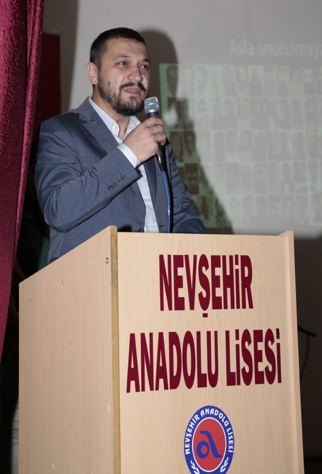 Nevşehir Anadolu Lisesi öğretmen ve öğrencileri tarafından hazırlanan 15 Temmuz Demokrasi Zaferi ve Ş ehitleri Anma programı,şehitler için 1 dakikalık saygı duruşu ve ardından İstiklal Marşı’nın söylenmesi ile başladı. Programın açılışında konuşan Okul Müdürü Yavuz Selim Yıldırım, 15 Temmuz’da şehit olan vatan evlatlarına Allah’tan rahmet ve yaralılarına acil şifalar diledi ve Allah’tan Türk Milleti’ne bir daha böyle günler yaşatmaması dileğinde bulundu.