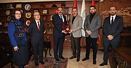 Nevşehir Barosu Başkanı Mustafa Necmi Öncül, ziyaretin anısına Belediye Başkanı Seçen’ e seramik tabak takdim etti.