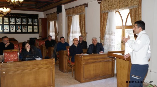 Nevşehir Sağlık Müdürlüğü ile işbirliği halinde gerçekleştirilen İlk Yardımcı Eğitimine, Nevşehir Belediyesi hizmet birimlerinin müdürleri katılıyor.