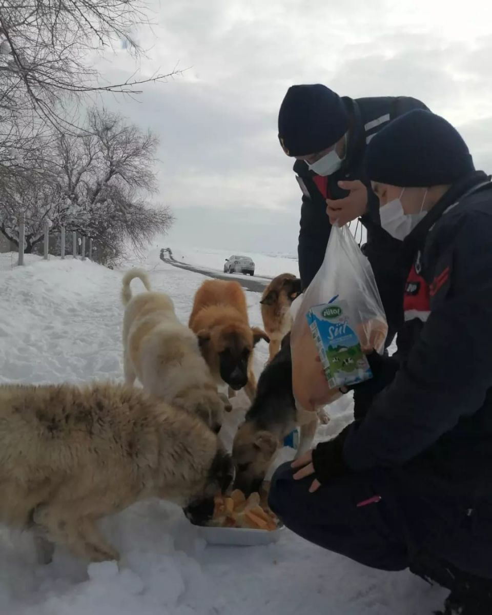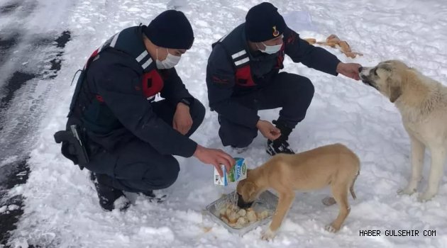 Olumsuz hava koşulları nedeniyle yiyecek sıkıntısı çeken sahipsiz sokak hayvanları ve Kuşlara Gülşehir ilçe jandarma Komutanlığına bağlı ekipler sahip çıktı.
