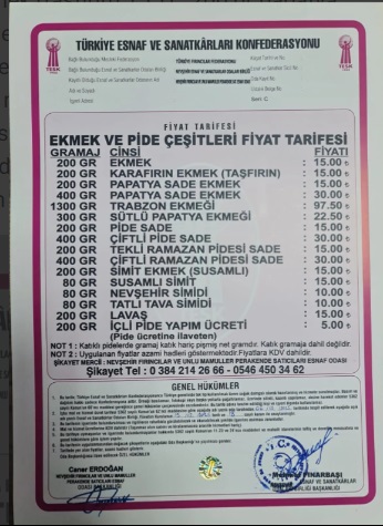 Nevşehir merkezde Fırıncı esnafının Nevşehir Esnaf ve Sanatkarlar Odası Başkanlığına zam talebi sonrası yapılan araştırmalar sonrası artan maliyetler göz önünde bulundurularak Esnaf ve Sanatkarlar Odası Komisyonu tarafından zam kararı alındı.