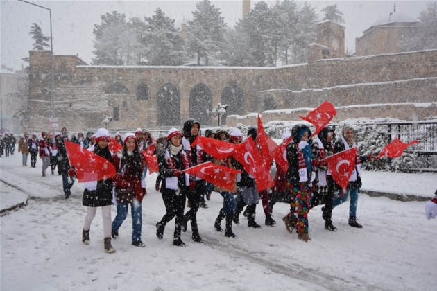 Nevşehir Gençlik Hizmetleri ve Spor İl Müdürlüğü tarafından Sarıkamış Harekâtı`nın 102.inci yılı etkinlikleri kapsamında kar altında yürüyüş düzenlendi.