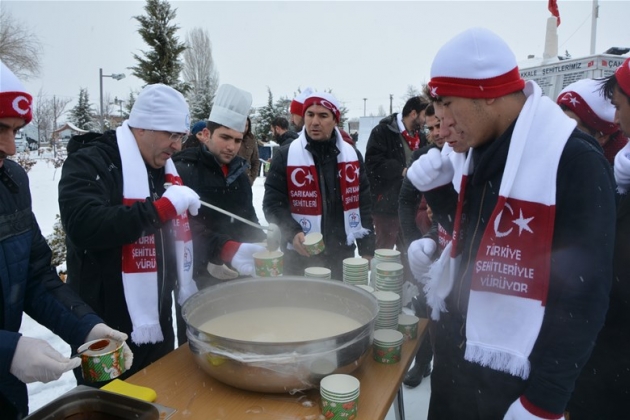 Tören, saygı duruşu İstiklal Marşının okunması ve kur'anı kerim tilavetinin ardından yapılan dualarla sona erdi. Tören sonunda Gençlik Spor İl Müdürlüğü tarafından vatandaşlara çorba ikram edildi. Yürüyüşe çok sayıda kişi katıldı ve katılanlara bere, atkı, eldiven ve Türk bayrağı dağıtıldı.