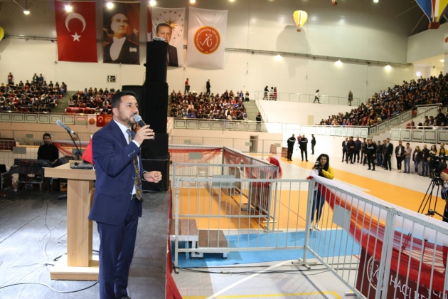 Nevşehir’de bölümleri olan ve eğitim açısından daha sıkıntılı olan illeri tercih etmeyin ve Nevşehir’i tercih edin Nevşehir Hacı Bektaş Veli Üniversitesini tercih edin. Hem aileniz ve hem de siz hasret çekmeyin, ailenizden uzak durmayın. Her türlü destekle ve imkân ile yanınızdayız. Hem sosyal, hem kültürel ve hem de sportif faaliyetlerinin şehir merkezine dönüşecek. Hepiniz de bundan faydalanmış olacaksınız. Bu şehir gençliğini ve benim muhabbet ve sevgi diyaloğum ile sizleri seviyorum. Bu sevgi ile birlikte bu şehri ayağa kaldıracağız” diye seslendi.
