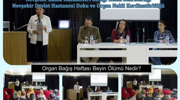 Kapadokya Meslek Yüksek Okulu toplantı salonunda gerçekleştirilen seminerde "Beyin Ölümü Nedir?" konusunu Doku ve Organ Nakli Sorumlu Hekimi ve Nevşehir Devlet Hastanesi Anestezi ve Reanimasyon Uzmanı Uzm. Dr. Mehmet Akif Yazar anlattı. "Organ Bağışının Önemi, tanımı, kanundaki yeri, yapılacağı yerler, organ bağışı kartı, ülkemizin organ bağışındaki yeri, hangi durumda organ bağışının yapılıp yapılmayacağı gibi konuları içeren bir sunumu Doku ve Organ Nakli Kordinatörü Şenay Karakuş Taşkın tarafından anlatıldı. Karşılıklı soru cevap şeklinde sonlandırılan seminere ilgi oldukça fazla oldu.