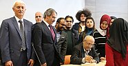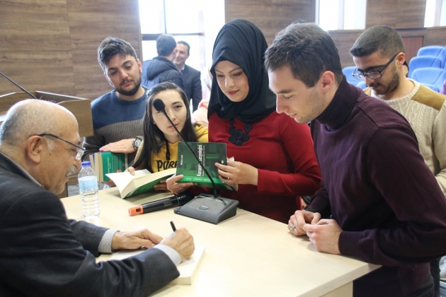 Etkinlik sonunda öğrenciler ile bir araya gelen Aydın, kitaplarını imzalayarak öğrenciler ile sohbet etti.