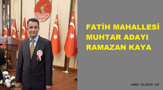 Şehit Babası Ramazan Kaya Haber Merkezimiz Haber Gülşehir com a yaptığı açıklamada; 30 Mart 2019 tarihinde yapılacak olan yerel seçimlerde Fatih Mahallesi Muhtarlığına talip olduğunu belirterek, gerçekleştirilecek olan yerel seçimlerde ipi göğüslemesi için tüm hemşerilerimizin kendisine destek vermesini talep etti.