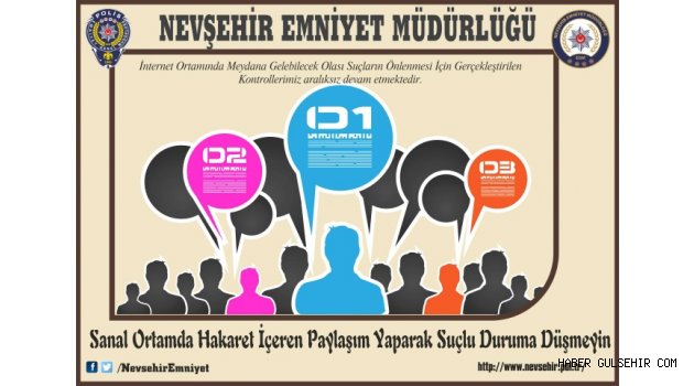 Nevşehir İl Emniyet Müdürlüğü uyarıda bulundu; Sanal Ortamda Hakaret İçeren Paylaşım Yaparak Suçlu Duruma Düşmeyin!
