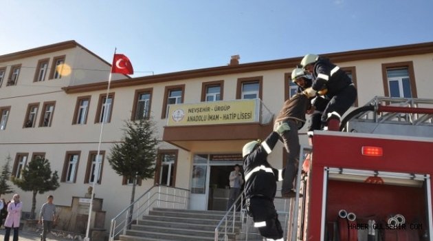 Ürgüp İmam Hatip Lisesi Müdürü Selçuk Yalçın ve itfaiye Amiri Ramazan Başdeli koordinesinde yapılan tatbikatta, sirenlerin çalmasıyla öğrenciler binadan güvenli şekilde çıkartıldı. Binanın boşaltılmasının ve öğrencilerin güvenli bölgeye alınmasının ardından okul binasında mahsur kalan bir öğrenci, itfaiye ekipleri tarafından merdiven yardımıyla kurtarıldı.