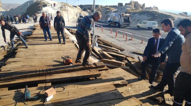 Ürgüp Kaymakamlığı Köylere Hizmet Götürme Birliği tarafından Üç Güzeller Mevki'ne geçici ahşap kaplama yürüyüş alanı yapımına başlanıldı.