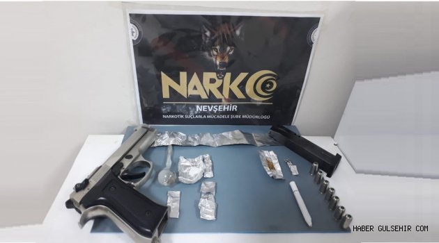 Şahıs “Uyuşturucu Madde Ticareti” ve “6136 sayılı Ateşli Silahlar ve Bıçaklar İle Diğer Aletler Hakkında Kanuna Muhalefet Etmek” suçlarından sevk edilmiş olduğu Mahkemece TUTUKLANARAK Nevşehir E Tipi Kapalı Ceza İnfaz Kurumuna Teslim edilmiştir''denildi.